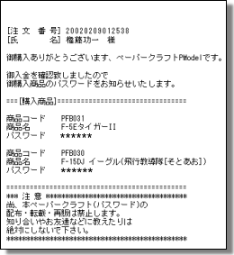 - ご入金を確認後、5日以内に購入製品のパスワードをお知らせする