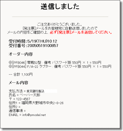 - [発注票]メールの内容・金額を確認後、必ずこのメールを返信してください。
