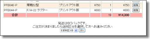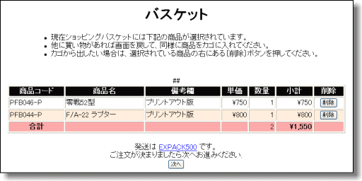 ※[注文へ(バスケット表示)]をクリックするとバスケットに入れた