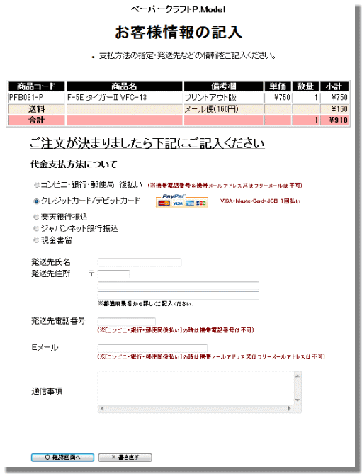 ※クレジットカード以外での御購入はこちらをご覧下さい