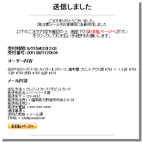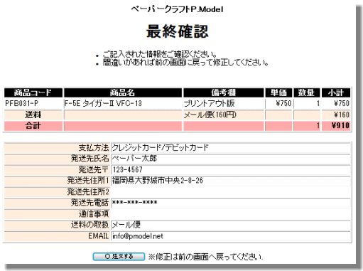 [発注票]メールの内容・金額を確認後